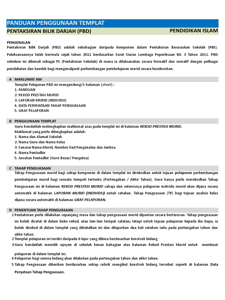 Xls Templat Pelaporan Pbd Pislam Tahun Razy Taupek Academia Edu